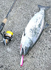 サクラマスを求めて日本海方面へ行ってきました。 朝5:00、無風のベタ凪状態の中で釣りをスタート! しばらくすると水面でベイトが跳ねる姿を発見! すかさずメタルジグをキャストしてスローに巻いてくるとサクラマスがヒット! しかも59cmの良型!さらに約一ヶ月ぶりの釣果!最高に嬉しい1匹でした! そろそろ日本海にも釣れる気配が来ているかもしれません!? 次は60cm超えを目指します!