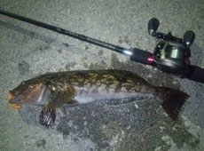7gテキサスにエコギア・バグアンツ2インチをリフト&フォールで狙っていると、着底と同時にバイト!ヒットしたのはアブラコ(アイナメ)!サイズは37pでした。