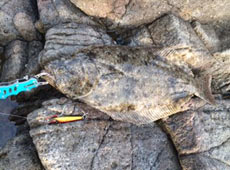 今回ももれなくホッケがお出迎え(笑)数本釣り上げ約1時間後、メタルジグをキャストしストップ&ゴーで誘ってくるとフォール中にホッケとは明らかに違うアタリが!一気に寄せてランディング成功!今期3枚目のヒラメはサイズアップの56cm、2.02kgでした。