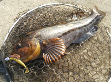 ラインテンションをかけすぎずゆっくりと寄せてキャッチ!40UPのアブラコ(アイナメ)ゲット!