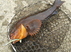 ひと通り探りきり次のポイントで私にヒット!ドラグが出されていく強いファイト!ヘチ際に突っ込むファイトはこの釣りの面白い所!キャッチしたのは42cmのアブラコ(アイナメ)でした!