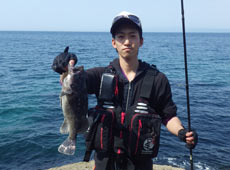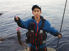 それからポイントを移動。天気も良くなり日中のソイが厳しい状況の中、小野さんが35cmほどのクロソイをゲット!