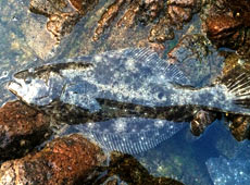 キャストしてすぐにヒラメらしき反応!同じ所で何度もアタリがあるものの、なかなかヒットしない・・・諦めずにキャストを繰り返していると待望のヒラメがヒット!!?と思いきや30cmくらいのミズクサカレイでした(笑)