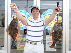 その後も反応があるので狙い続けると今度こそ待望のヒラメがヒット!サイズは43.5cm!さらにヒットは続き41.5cmのヒラメ!その後も30後半サイズが2枚。この日はソゲサイズを含めて合計10枚のヒラメがヒットしました!!