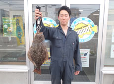 それから1時間ほどたってから再びヒット!ストップ&ゴーのストップ後のテンションフォールでバイト!最初は型の良いホッケだと思い寄せてくるとヒラメの姿!慎重にファイトしてランディングしたのは44cmのヒラメでした!他にも2回ヒラメらしき魚をヒットしましたが、途中でバラし・・・(涙)しかし、魚の魚影は濃いようなのでまた次回狙ってみたいと思います!