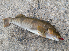 それでも狙い続けているとヒット!なかなかの重量感に首も振らないカレイのような引き!手前まで寄せてくると今度は手前で強烈な突っ込み!頭のなかではタカノハカレイを妄想!!何とか浮かせて見えてきたのは細長い魚体!?正体は40UPのアブラコでした(笑)