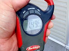 そして夜が明けはじめた頃でした。 サミーズ・ディープストリームをキャストし、底まで沈めてからリールを2〜3回巻くと重さを感じました。 その重さの中に微かな生命感を感じ、すかさずフッキングすると。ロッドが大きく曲がり魚が暴れ始めました。