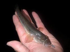 いっしょに釣りをしていた中澤さんにはマダイの幼魚がヒット!今年はアジを狙っていて小さなマダイが釣れる話をよく聞きます。キャップライトの光を当てると、ブルーの斑点が輝いてとても綺麗でした。