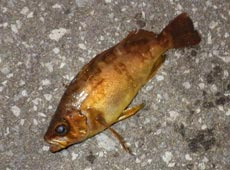 引き続きライトゲームを楽しんでいたたじま君が次にヒットしたのはアカメバルと思われるメバル。 濃い黄金色の魚体はとても綺麗でした。