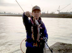 船道エリアで粘っていたたじま君がナイスサイズヒット! キャッチしたのは41cmゲット!