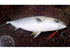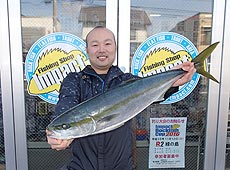 ドラグが出さる強烈な引き!10分ほど格闘してなんとかネットイン74.5cm、3.7kgのワラササイズのブリでした。