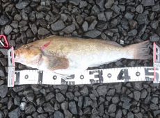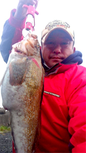 ヒラメ狙いで知内へ向かいましたがこの日は反応なし・・・狙いをロックフィッシュに変えてボトムを中心にスローに誘ってくると「ドンッ」と鋭く重いアタリが!フッキングするとガンガンと暴れる魚!タモ入れに苦戦しながらも何とかランディング成功!ジャスト50cmのアブラコ(アイナメ)でした!