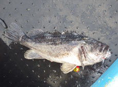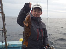 オフショア初挑戦の三浦さんは船酔いと戦いながらもアブラコ(アイナメ)キャッチ!