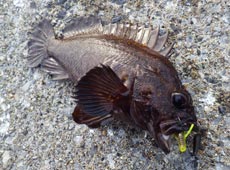 ケーソンや捨て石の隙間を狙う穴打ちパターンが主体となり、コンスタントにアブラコ(アイナメ)がヒット!40アップの良型も混じり上場の釣果。体色のハッキリした個体も釣れ、沖から魚が入りはじめている様子。