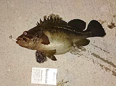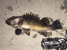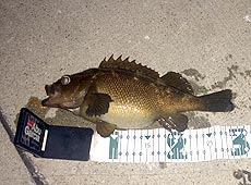 仕事が終わってからじゅんぺいとガヤ(エゾメバル)を狙いに森方面へ。 沖目の沈みブロック際のカケ上がりをエコギア・グラスミノーLのリフト&フォール後、ステイさせて狙っているとヒット! キャッチしのは尺サイズに迫る29cmのガヤ(エゾメバル)!