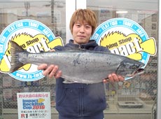 島牧まで遠征し、早朝4時半から釣りをスタート。 開始から約30分後、岡クラフト・岡ジグLT−35クリアグリーンをキャストしてややゆっくりめに巻いて誘い、手前まで来たのでそろそろジグを回収しようと早く巻き始めた瞬間にヒット。 しばらくドラグが鳴りっぱなしで糸を出されましたが、慎重に波打ち際まで寄せてランディング 人生初の60cm、3kg超えのサクラマスを釣ることができました。