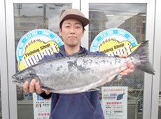 前回記録更新のサクラマスを釣ったポイントへ再び入釣。 しばらくすると沖にイルカの群れを確認。 しかし、あるのはホッケの反応のみ・・・そのうちイルカの姿も無くなりサクラマスが釣れそうな予感!? 潮も良くなりヒットを期待しましたが反応が無く、ルアーをミノーからメタルジグにチェンジ。 ミディアムリトリーブで狙っているとホッケとは違う魚がヒット! 最初は引きが弱くすんなりよってくるものの、手前まで寄せると途端に引きが強烈になりドラグが何度も出されました! 攻防を繰り返しキャッチしたのは62cm、3,34kgの良型サクラマスでした!