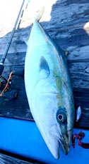 一通り楽しんだ所でポイントを移動しようとリグを回収していると、突然引ったくる強いファイト! 得体のしれない魚にドキドキしながらやり取りし上がってきたのは60cmを越えるフクラギサイズのブリ! 思わぬヒットに驚きでした。