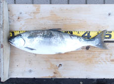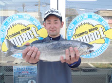 AM3:00ころ釣りをスタート!コジマクラフト・カブキメタル35をキャストして表層をスローリトリーブで誘ってくると、10投目くらいで「ゴンッ」と強いあたりが!上がってきたのはサクラマス!開始早々にして目標の一つをクリア!残すはヒラメ!とその後もキャストを続けると小型のヒラメがヒット!後はサイズアップ!と意気込みましたが、同サイズのヒラメを1枚追加し、この日は終了となりました。