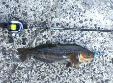 先日青苗港に、ロックフィッシュ釣行に出掛けました。すると、17時半すぎに、エコギア・BTSで、43cmのアブラコ(アイナメ)をキャッチ。