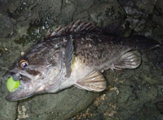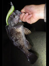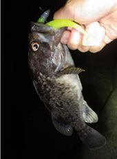 漁港と同じリグで磯際をスイミングで狙うとすぐにヒット!サイズアップ間違いなしのナイスファイトの正体は35 cm ほどのクロソイ!