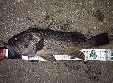 クロソイ狙いで知内方面の漁港へ行ってきました。サワムラ・ワンナップシャッド5インチをキャストしてストップ&ゴーで広範囲に探りました、テトラ際を泳がせて、もうそろそろ回収しようと思った頃に「コツンッ」と手に感触が・・・テトラに当たったのかな?と思った瞬間に水面で「バシャバシャ」と水柱!!!!そこから一気にテトラに突っ込まれました。いったい何が起こったのか混乱しながらも必死に応戦!なんとか水面まで浮かせて見えた魚体を見てまたびっくり!46cmのクロソイでした。水面直下でこんなに大きなクロソイがヒットするとは驚きでした!