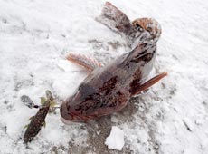 さらにカジカが連続ヒット!口の中にはヒットルアーのキジハタグラブ4インチと同じ大きさのカニの姿!まさにマッチザベイト!