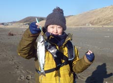 完全に日が昇ると魚が沖へ出てしまったのか回遊が全く無く沈黙・・・ポイントを移動しても何も起こらないまま時間が過ぎ、諦めかけた時でした。滝沢さんに待望のヒット!人生初サクラマスをキャッチして大興奮!人一倍真剣にキャストを繰り返していた滝沢さん!諦めない精神力と集中力でキャッチした一匹!おめでとうございます!