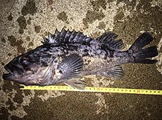 さらにカラーを変えてリフト&フォール!着底でゴンっ!のらない…またボトムまで落としゴンっ!またのらない…諦めずに再度ボトムまで落としゴンっ!!ようやくフッキングが決まりゴリ巻き!! これはグッドサイズだと確信!あとはランディングだか、なかなか重たくて上がらない。 仕切り直して一気にぶち抜くと上がってきたのは新記録の38cm!