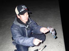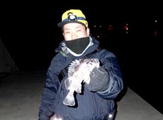 中野さんもエコギア・キジハタグラブ4インチで底付近を漂わせてクロソイがヒット!