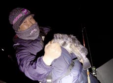 最後に・・・でんでんがパワーシャッド5インチに0.9gのジグヘッドで食わせたクロソイ・・・ワームが大きすぎてエラから尻尾が飛び出しちゃってますが(笑)