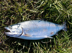 釣り場には大勢の釣り人!近くの釣り人にサクラマスがヒットし、テンションが上がります!