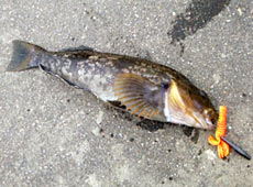 短時間勝負で函館港内へ。 根が点在する沖のポイントめがけて18gフリリグ&バークレイ・パルスクロー3インチをキャスト! ボトムをゆっくりとズル引きしながら丁寧に探っていると、さっそくバイトがありヒット! なかなかのファイトの正体は40cmのアブラコ(アイナメ)! この1匹で心も満たされ終了しました。