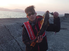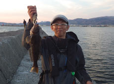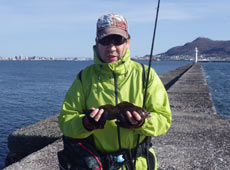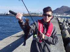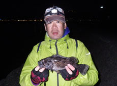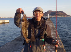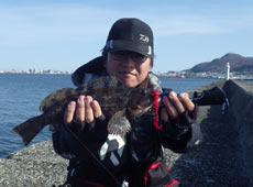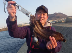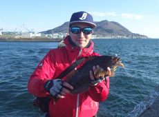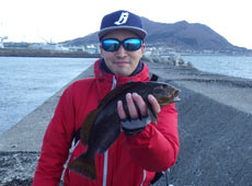 京都より帰省中の村上さんはテトラの際を探りアブラコ(アイナメ)ゲット!