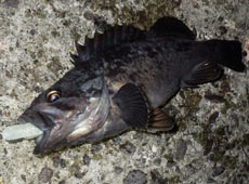 ボトムを丹念に狙っていた小林さんもアブラコ(アイナメ)ゲット!ヒットルアーはエコギア・バグアンツ2インチ。