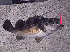 GW 中は、奥尻島もたくさんの島外からのアングラーでにぎわっていました! 先日、青苗漁港にナイトロックにいってきました!釣り開始、数分でアタリが! 35cm オーバーのアブラコ(アイナメ)が釣れました! (7g ジグヘッドにパワーシャッド 4 インチ )