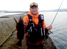 広之さんはヘチ際を粘り強く探り続け再びアブラコ(アイナメ)をキャッチ!ルアーローテーションを重ねた価値ある1匹!