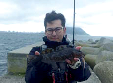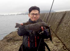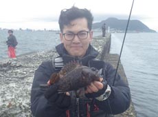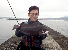 青山くんはテトラ際をアブラコ(アイナメ)連発!