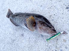 続けて自分にもアブラコ(アイナメ)がヒット!エコギア・グラスミノーLのスイミングにヒット!
