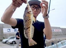 ガヤの猛攻に苦戦していた山口さんに、スナアブラコ(エゾアイナメ)がヒット!ここの漁港はスナアブラコ(エゾアイナメ)の魚影が濃い?