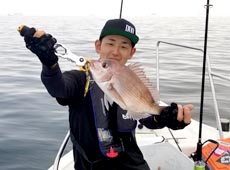 函館近郊の沖合いでヒラメを狙いました! まずは水深10mほどのポイントでスタート。キャストしながら広範囲を探ります。 マイワシと思われる反応が魚探に写り期待十分。 が、期待通りにはいかず、一向に反応が無い状況が続き苦戦。 状況を打開するためポイントを移動。水深20mほどのポイントでチャレンジ! 移動まもなく三浦君にヒット!ヒラメを期待しながら浮いてきたのは赤い魚体!!キャッチしたのは想定外のマダイ!サイズは40cmありました!ヒットルアーはハヤブサ・ジャックアイキックテール40g
