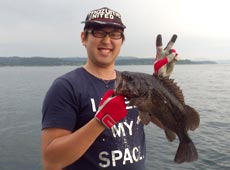 タイラバ&ライトジギングでロックフィッシュを狙いました。 向かったのは木古内沖。 水深30mラインにて釣り開始。魚探にはビッシリとマイワシの反応が映りソイ類の期待が高まります。 開始まもなく石川さんにヒット!ファーストフィッシュはマゾイでした!ヒットルアーはジャッカル・スルメデス100g。