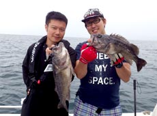 文彦さんは石川さんと同じくジャッカル・スルメデスです100gで良型クロソイキャッチ!ベイトが大きいためか、ボリュームのあるタイラバに好反応!