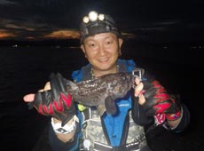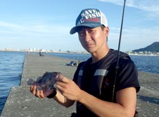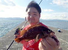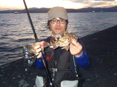 辺りが薄暗くなってきた所で西田君が20cmほどのカサゴをゲット!