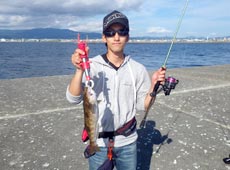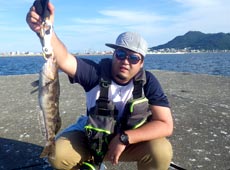 夕マズメに差し掛かり、ソイ類の活性が上がるタイミングで松前から参加の寺岡さんはマゾイをゲット!