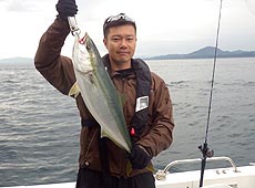 キャッチしたのは本日の本命!ワラササイズのブリゲット! その後、反応がなくなりポイントを移動。