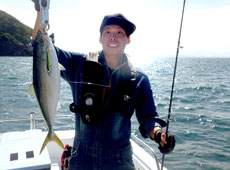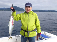 途中ブリの反応があり、ブリ用タックルでのジギングで狙っていた小林さんにヒット!ドラグを何回も出されながらもキャッチしたのは、ワラササイズのブリ!
