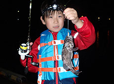 親子で参加の福原さんもサバ&アジを楽しんでいると、けいじ君に良型のクロソイがヒット!