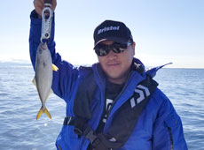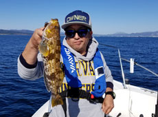 それからも苦戦は続く中、中浜さんがワカシサイズのブリキャッチ!回収中のタイラバにヒットしたとのこと。 その後はアブラコ(アイナメ)をキャッチ!
