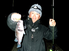 初めての沖堤参加の安藤さんに良型のマゾイがヒット!